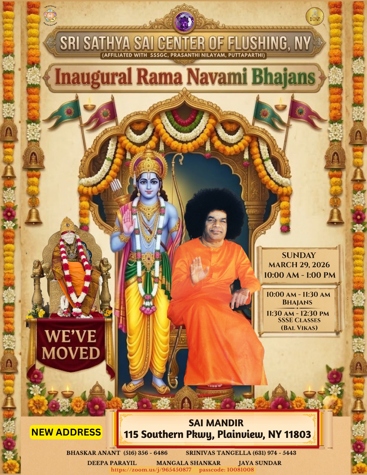 Fw: New Location | Bhajans and SSSE classes | Sun, Mar 29, 2026 | Flyer